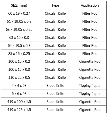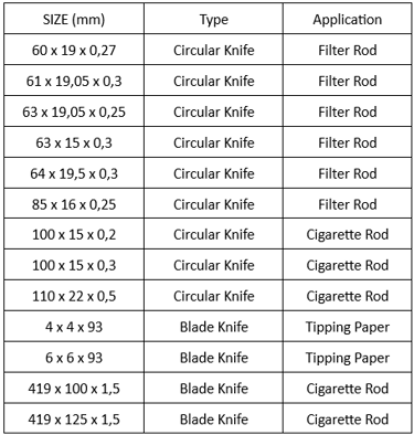 Blades For Tobacco & Cigarette Industry
