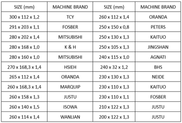 BHS, FOSBER, Hsieh, MITSUBISHI, K & H, TCY, MARQUIP, JUSTU, KAITUO, JINGSHAN, AGNATI, ISOWA, WANLIAN and another machine brand.